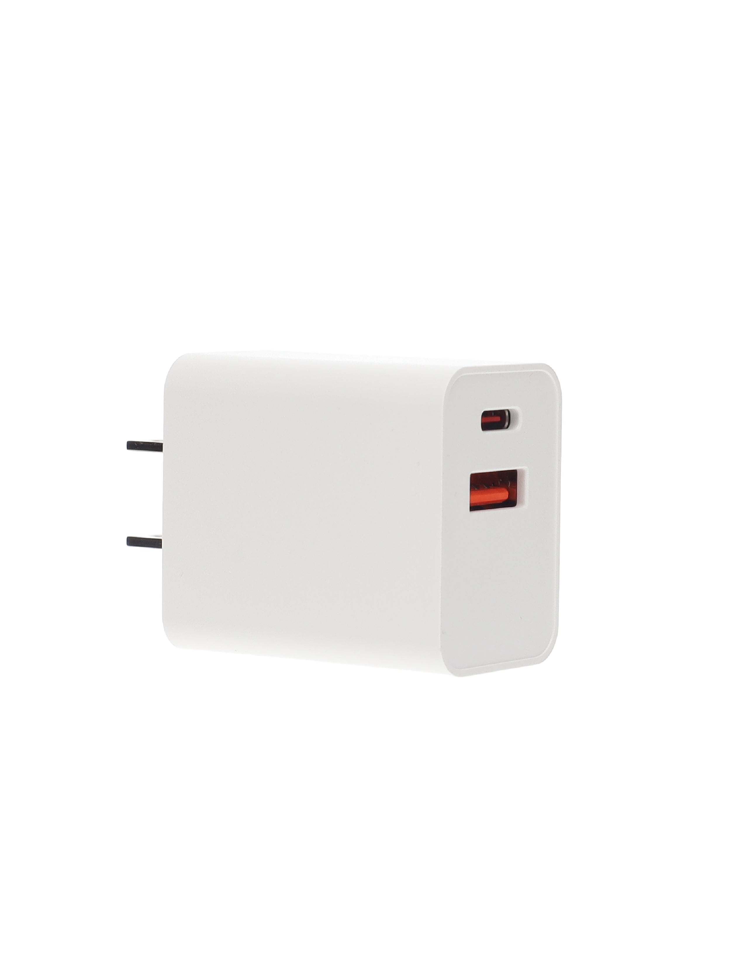 Dual-port USB-C and USB-A charger with a compact, lightweight design and PD technology for faster, more efficient charging.